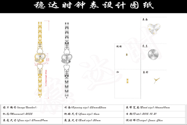 由手表生產(chǎn)廠家——穩(wěn)達(dá)時設(shè)計(jì)的這款女士手鏈?zhǔn)直硪孕∨鷮矍榛孟霝樵O(shè)計(jì)理念,心形表頭表鏈設(shè)計(jì),獨(dú)具創(chuàng)意,完美切割,時尚立體,創(chuàng)意表扣設(shè)計(jì),手表生產(chǎn)廠家這款手表以心形為主打形狀,為小巧女士服裝搭配的極佳裝飾品。